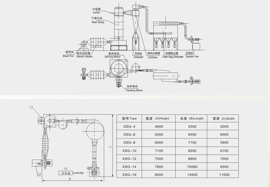 XSG系列(lie)旋轉閃蒸干(gan)燥(zao)機是我廠在引(yin)進、吸收國外先(xian)進技術的基(ji)礎(chu)上(shang),自行(xing)開發成功(gong)的新型干(gan)燥(zao)設(she)(she)備。該(gai)機技術先(xian)進,設(she)(she)計合理,結構緊湊(cou),適用(yong)范圍廣,生產能(neng)力(li)大,產品(pin)質量好,效率高,節(jie)能(neng),在一個設(she)(she)備內(nei)干(gan)燥(zao)、粉碎、篩分(fen)一次(ci)性完成,消除環境污(wu)染,整機性能(neng)達到國際先(xian)進技術水平。